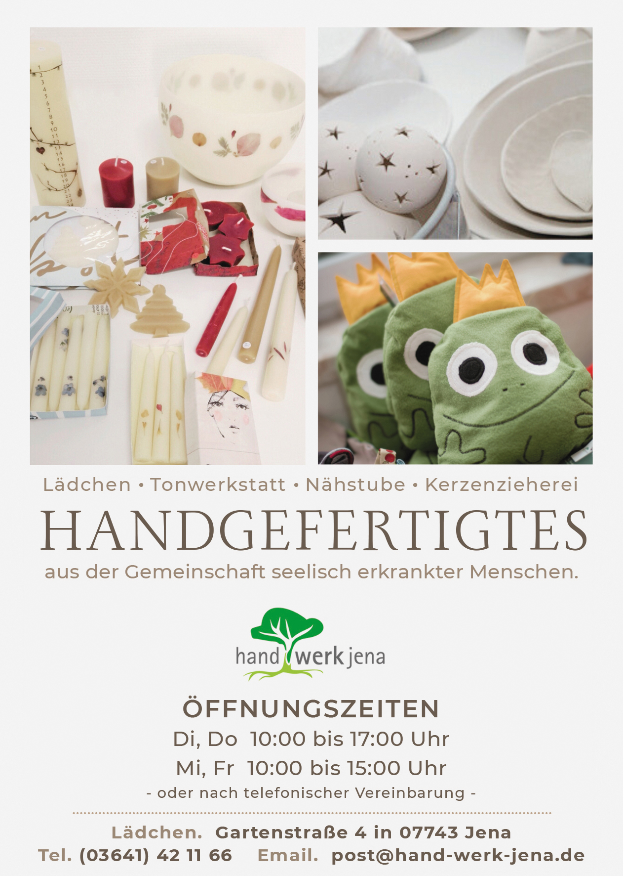 Kleine und größere Nettigkeiten zum Verschenken oder Selbstbehalten gibt es in unserem Lädchen: von Keramik über Genähtes hin zu selbstgezogenen Kerzen aus 100% Bienenwachs u.v.m.